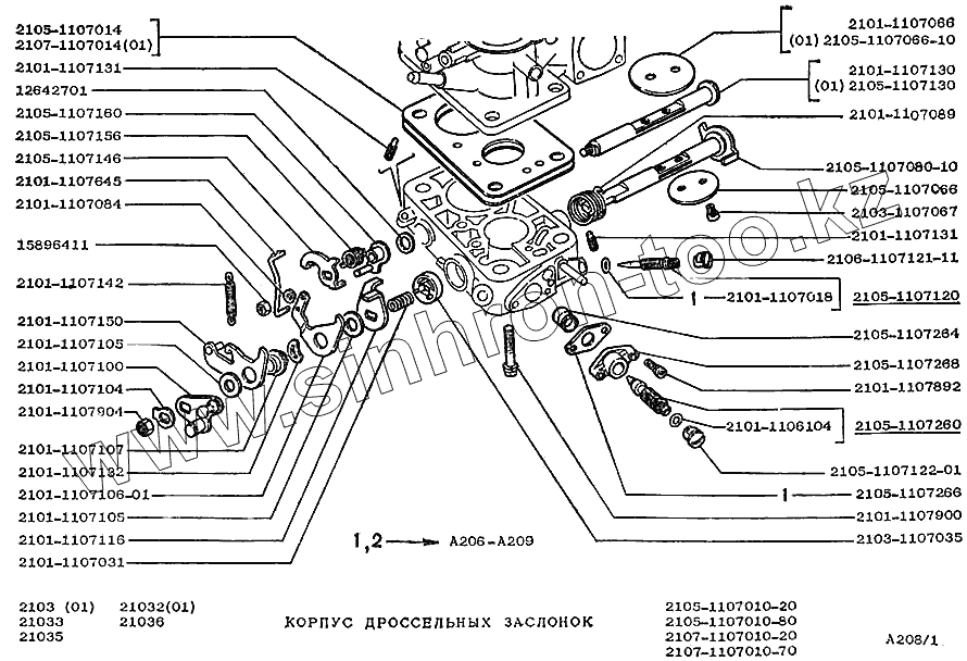 Каталог запасных частей к технике: ВАЗ-2103. Корпус дроссельных заслонок