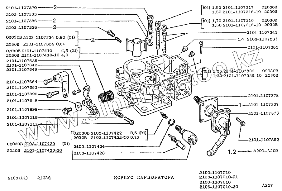 Каталог запасных частей к технике: ВАЗ-2103. Корпус карбюратора