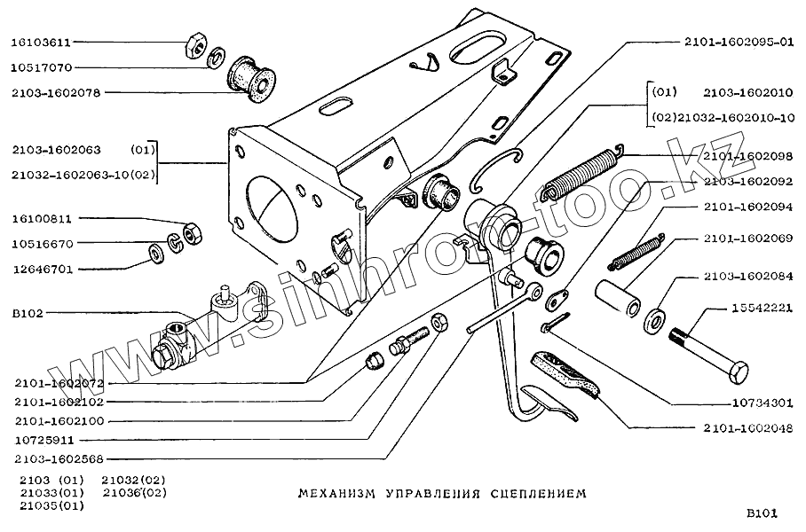 Каталог запасных частей к технике: ВАЗ-2103. Механизм управления сцеплением