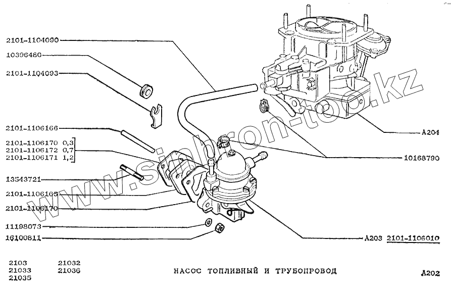Каталог запасных частей к технике: ВАЗ-2103. Насос топливный и трубопровод