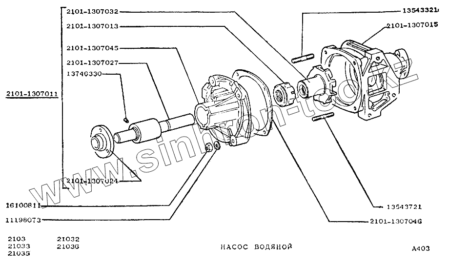 Каталог запасных частей к технике: ВАЗ-2103. Насос водяной