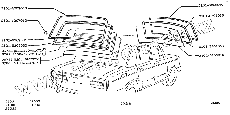 Каталог запасных частей к технике: ВАЗ-2103. Окна