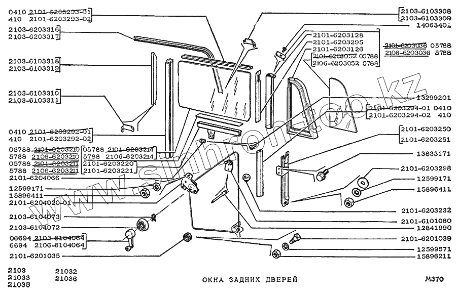 Каталог запасных частей к технике: ВАЗ-2103. Окна задних дверей