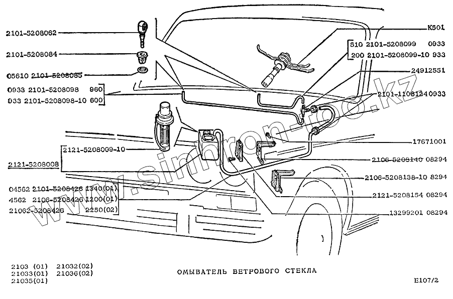 Каталог запасных частей к технике: ВАЗ-2103. Омыватель ветрового стекла