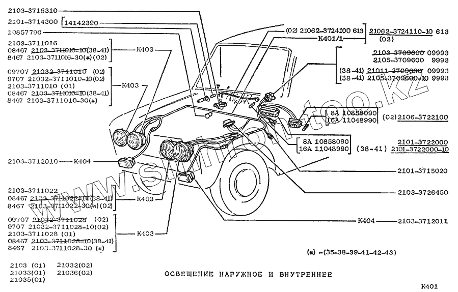 Каталог запасных частей к технике: ВАЗ-2103. Освещение наружное и внутреннее
