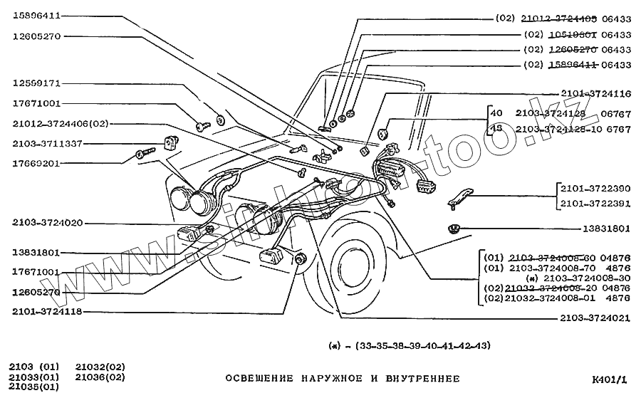Каталог запасных частей к технике: ВАЗ-2103. Освещение наружное и внутреннее