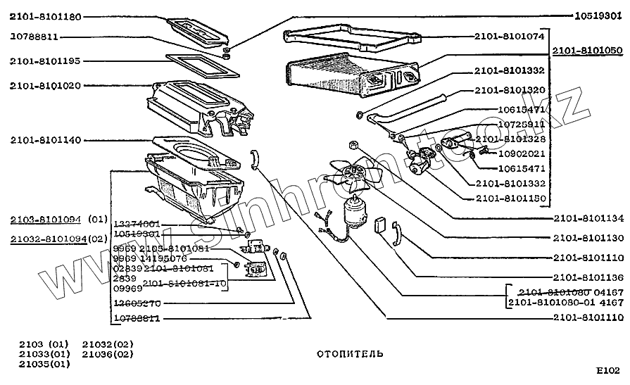 Каталог запасных частей к технике: ВАЗ-2103. Отопитель
