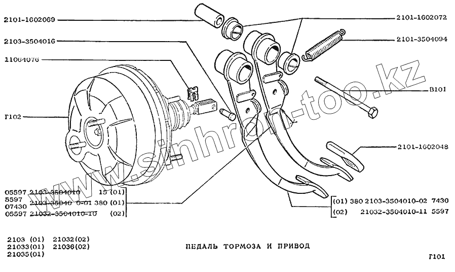 Каталог запасных частей к технике: ВАЗ-2103. Педаль тормоза и привод