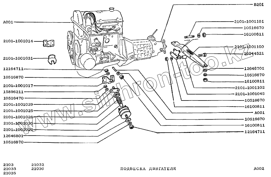 Каталог запасных частей к технике: ВАЗ-2103. Подвеска двигателя