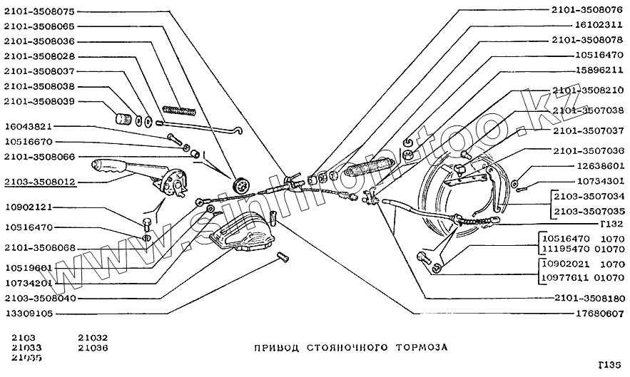 Каталог запасных частей к технике: ВАЗ-2103. Привод стояночного тормоза