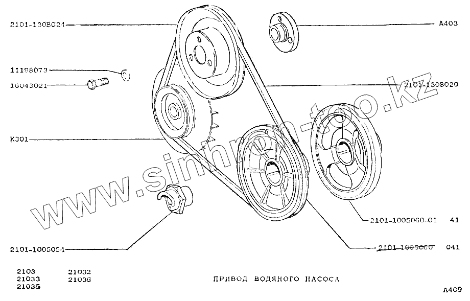 Каталог запасных частей к технике: ВАЗ-2103. Привод водяного насоса