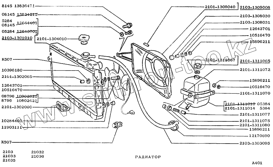 Каталог запасных частей к технике: ВАЗ-2103. Радиатор