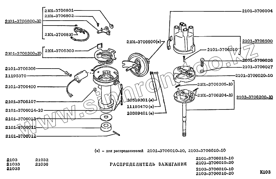 Каталог запасных частей к технике: ВАЗ-2103. Распределитель зажигания