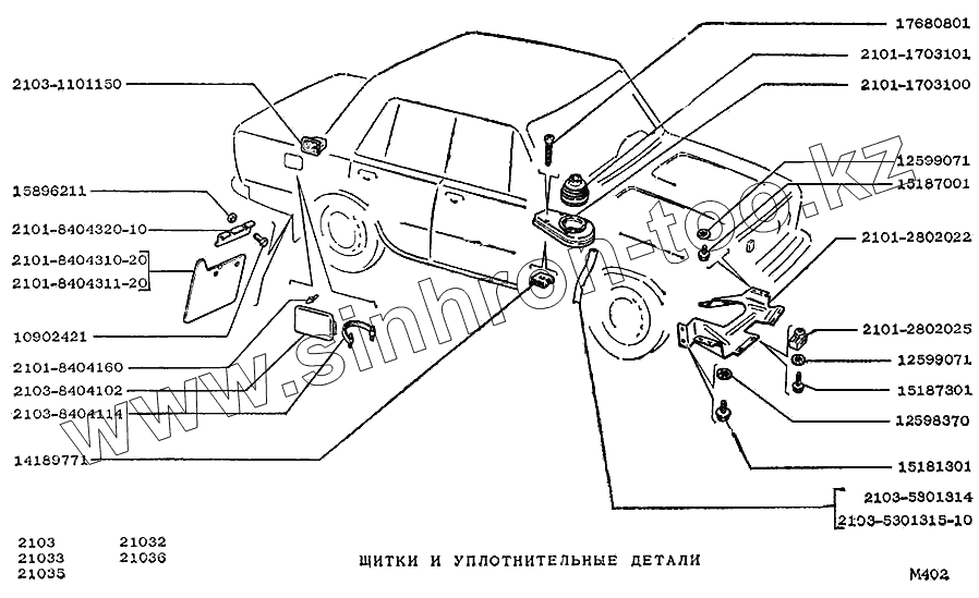 Каталог запасных частей к технике: ВАЗ-2103. Щитки и уплотнительные детали