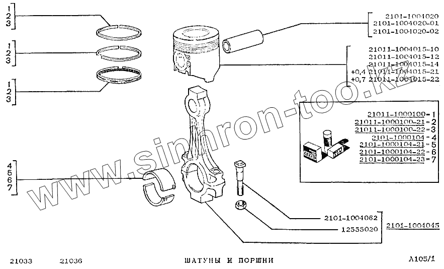 Каталог запасных частей к технике: ВАЗ-2103. Шатуны и поршни