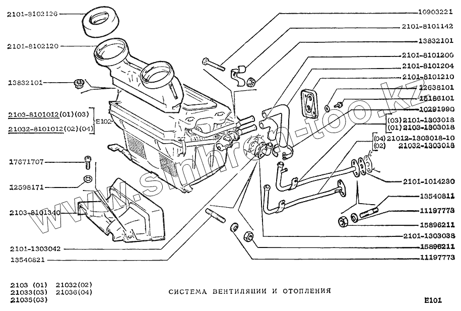 Каталог запасных частей к технике: ВАЗ-2103. Система вентиляции и отопления