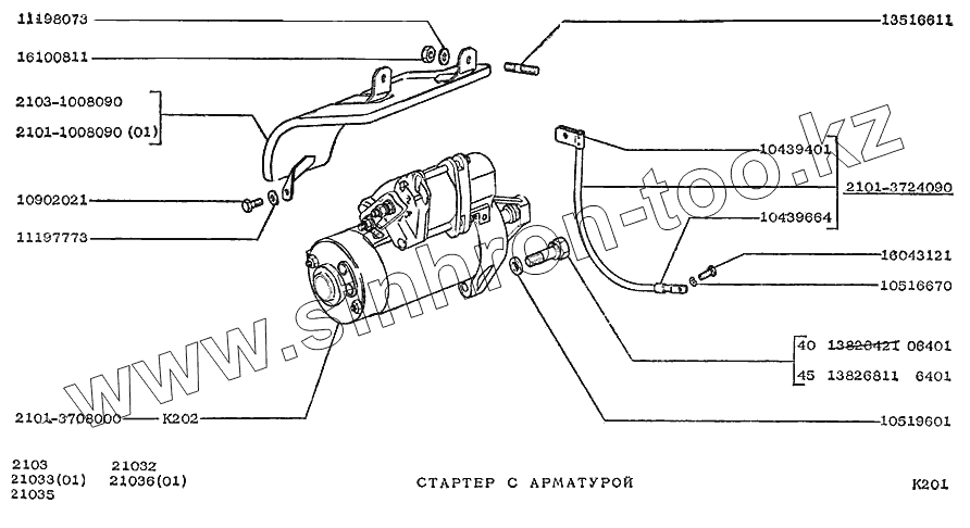 Каталог запасных частей к технике: ВАЗ-2103. Стартер с арматурой