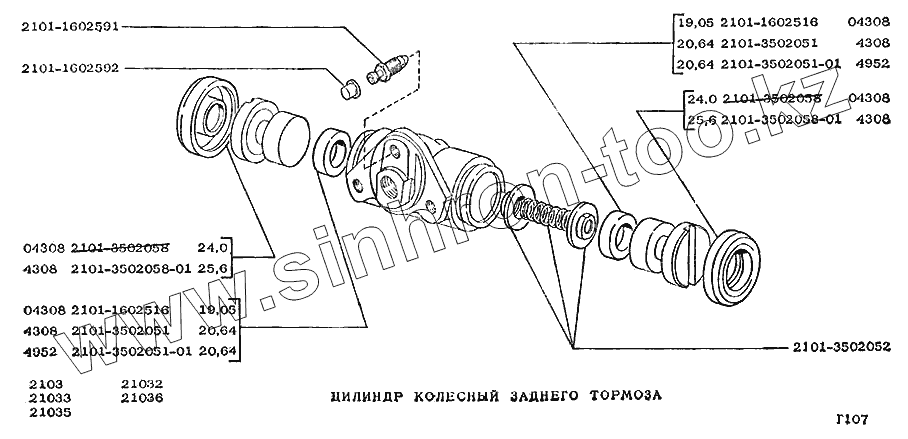 Каталог запасных частей к технике: ВАЗ-2103. Цилиндр колесный заднего тормоза
