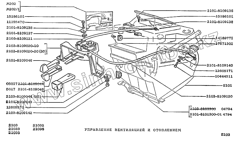 Каталог запасных частей к технике: ВАЗ-2103. Управление вентиляцией и отоплением