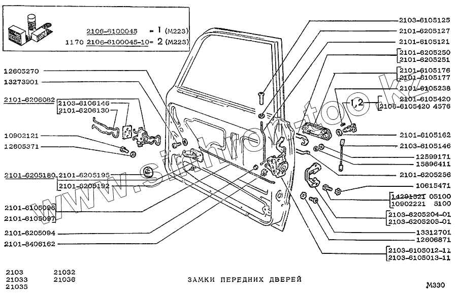 Каталог запасных частей к технике: ВАЗ-2103. Замки передних дверей