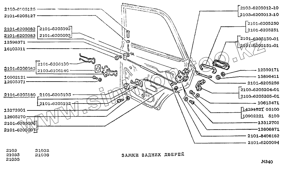 Каталог запасных частей к технике: ВАЗ-2103. Замки задних дверей