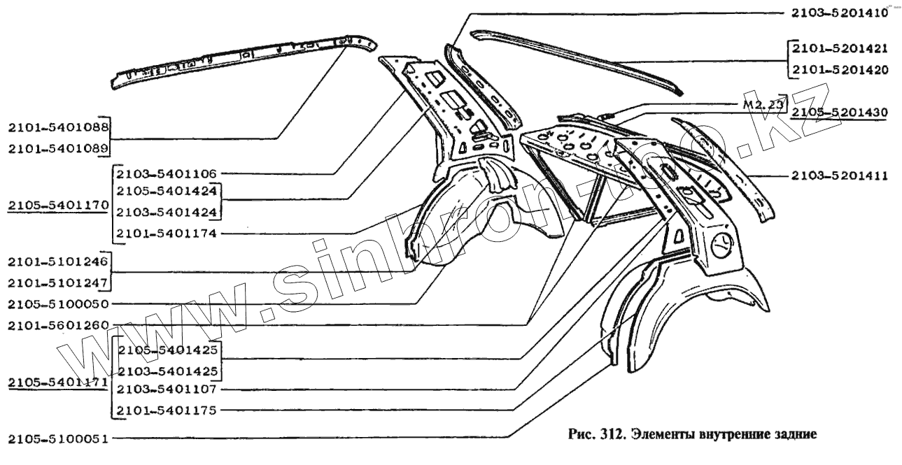 Каталог запасных частей к технике: ВАЗ-2104. Элементы внутренние задние