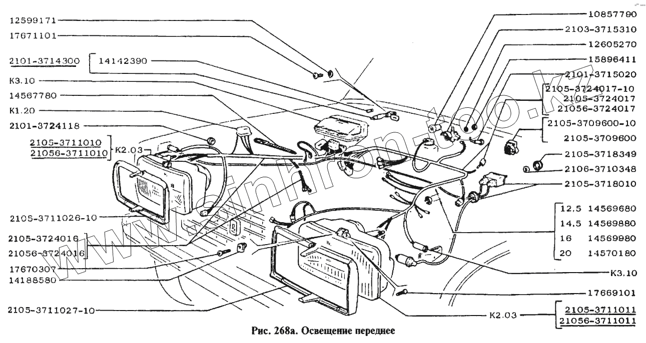 Каталог запасных частей к технике: ВАЗ-2104. Освещение переднее