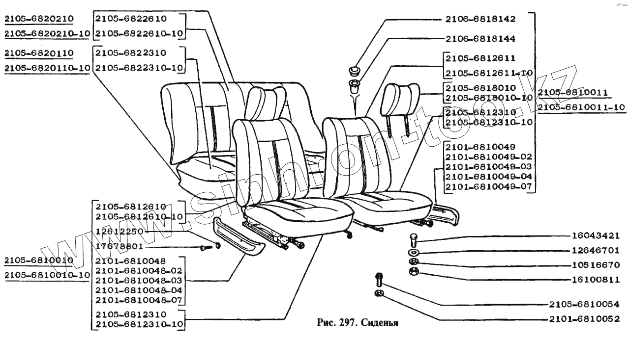 Каталог запасных частей к технике: ВАЗ-2104. Сиденья