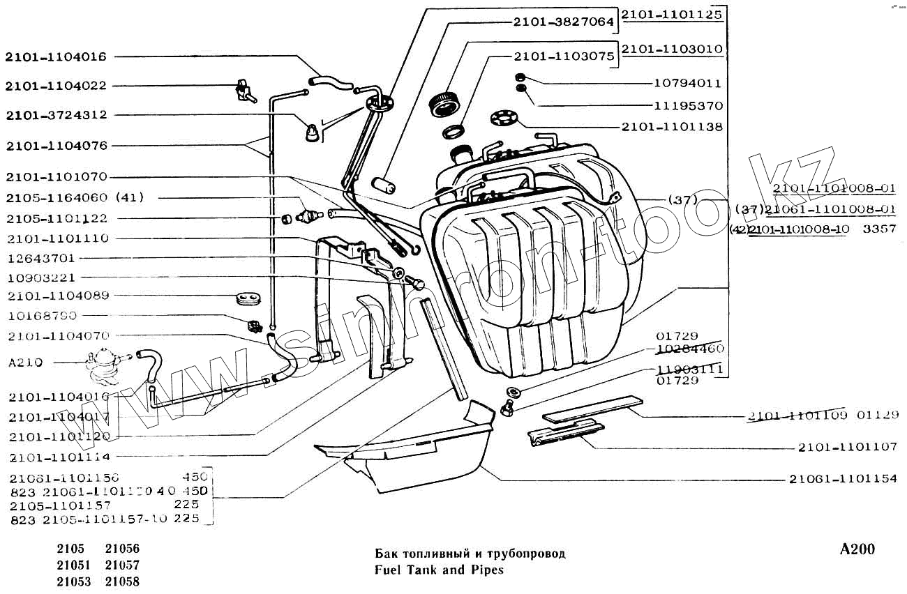 Каталог запасных частей к технике: ВАЗ-2104, 2105. Бак топливный и трубопровод