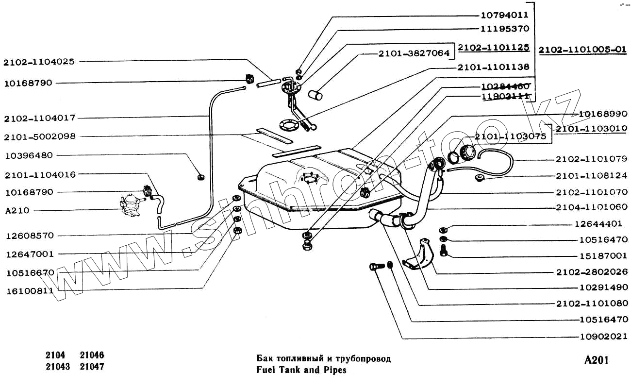 Каталог запасных частей к технике: ВАЗ-2104, 2105. Бак топливный к трубопровод