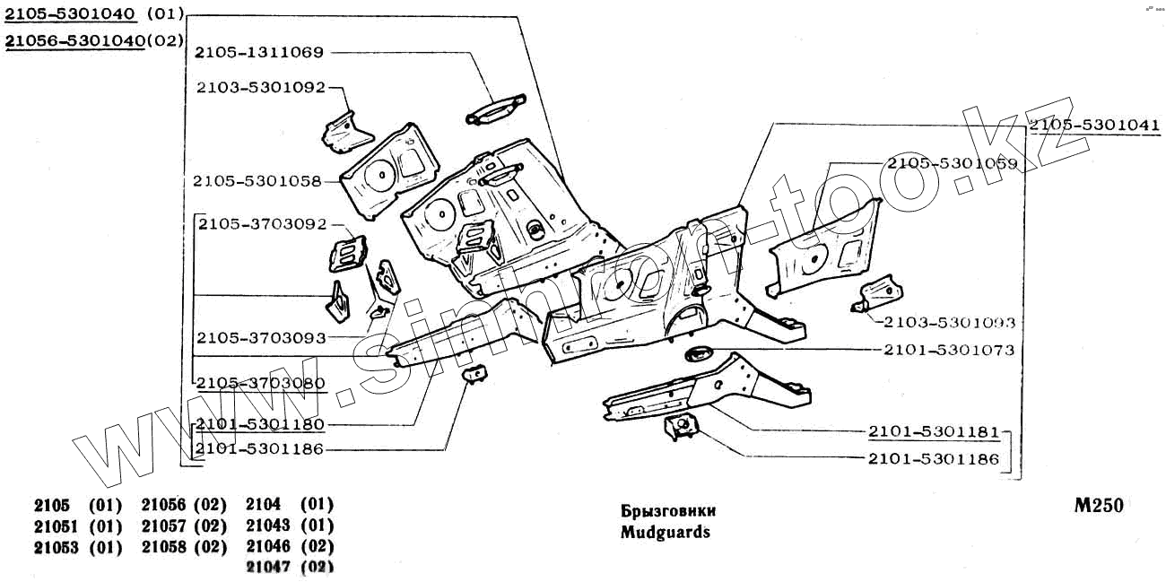Каталог запасных частей к технике: ВАЗ-2104, 2105. Брызговики