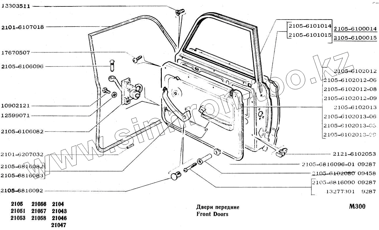 Каталог запасных частей к технике: ВАЗ-2104, 2105. Двери передние