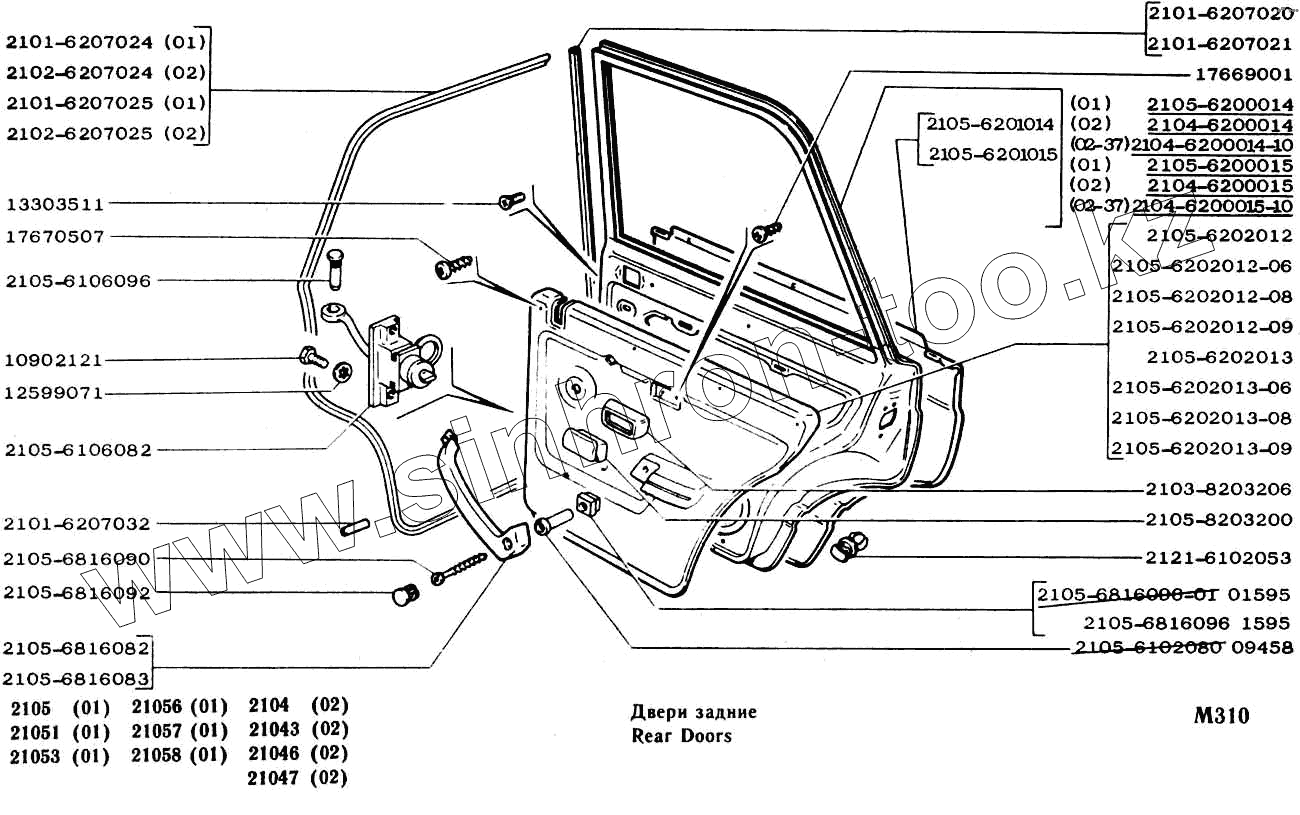 Каталог запасных частей к технике: ВАЗ-2104, 2105. Двери задние