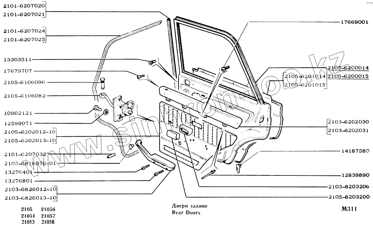 Каталог запасных частей к технике: ВАЗ-2104, 2105. Двери задние