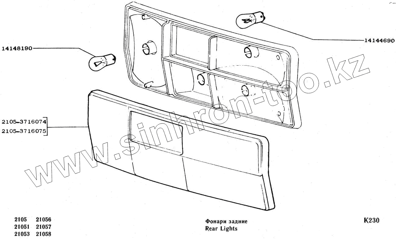 Каталог запасных частей к технике: ВАЗ-2104, 2105. Фонари задние