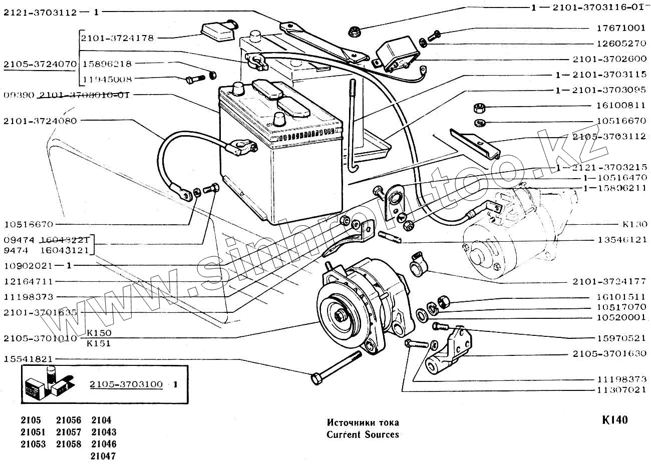 Каталог запасных частей к технике: ВАЗ-2104, 2105. Источники тока
