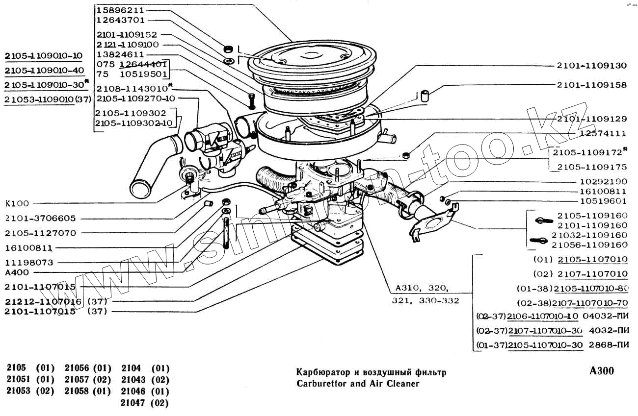Каталог запасных частей к технике: ВАЗ-2104, 2105. Карбюратор и воздушный фильтр