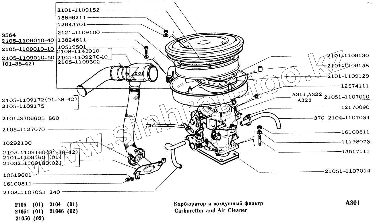 Каталог запасных частей к технике: ВАЗ-2104, 2105. Карбюратор и воздушный фильтр
