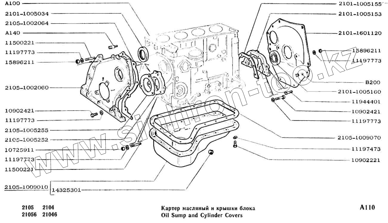 Каталог запасных частей к технике: ВАЗ-2104, 2105. Картер масляный и крышки блока