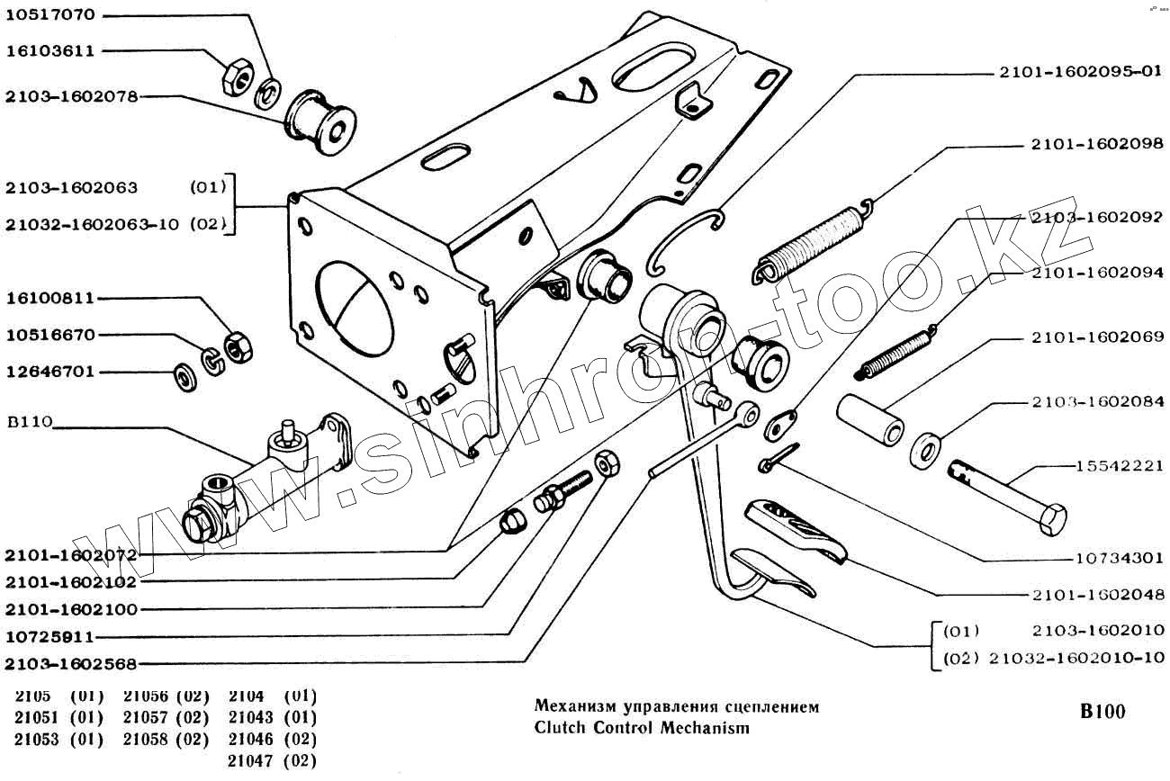 Каталог запасных частей к технике: ВАЗ-2104, 2105. Механизм управления сцеплением