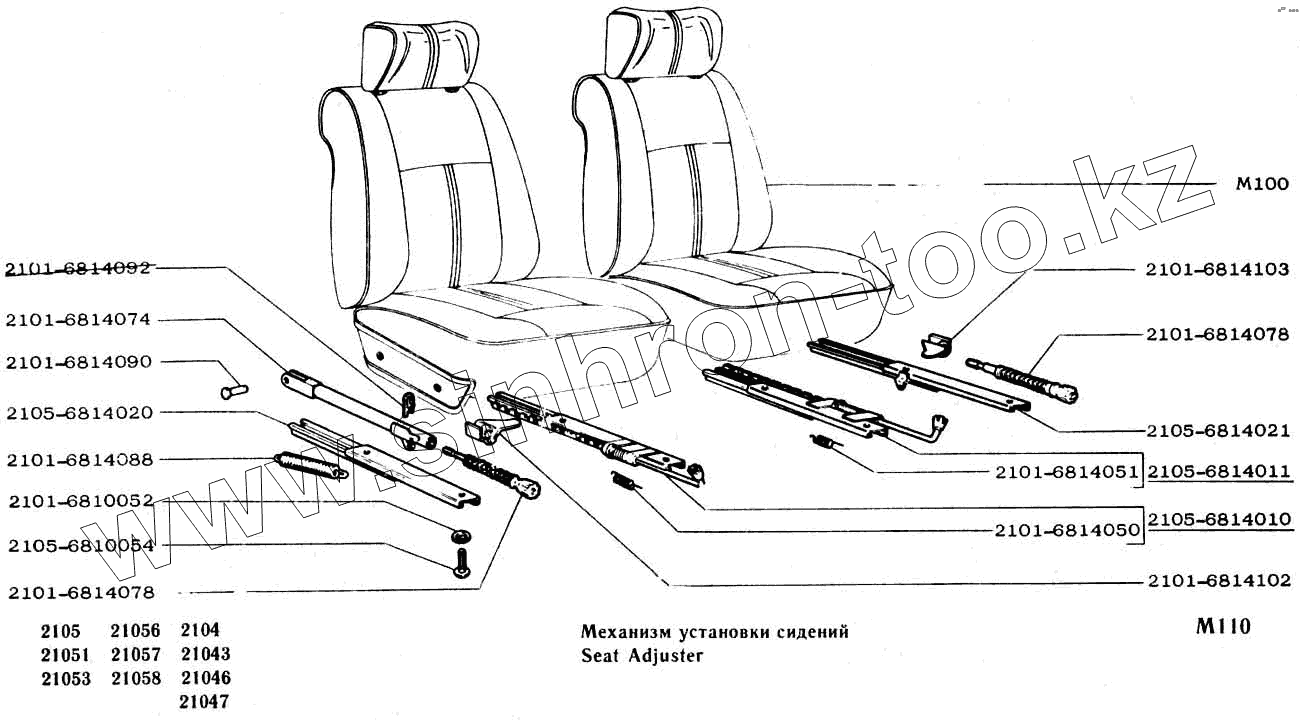 Каталог запасных частей к технике: ВАЗ-2104, 2105. Механизм установки сидений