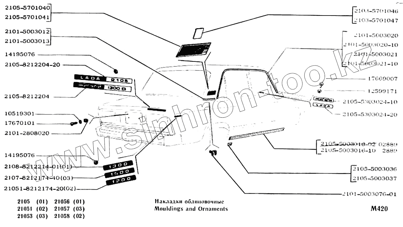Каталог запасных частей к технике: ВАЗ-2104, 2105. Накладки облицовочные