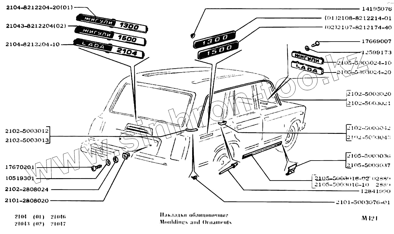 Каталог запасных частей к технике: ВАЗ-2104, 2105. Накладки облицовочные