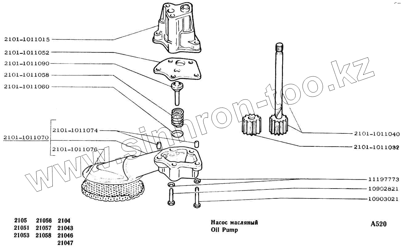 Каталог запасных частей к технике: ВАЗ-2104, 2105. Насос масляный