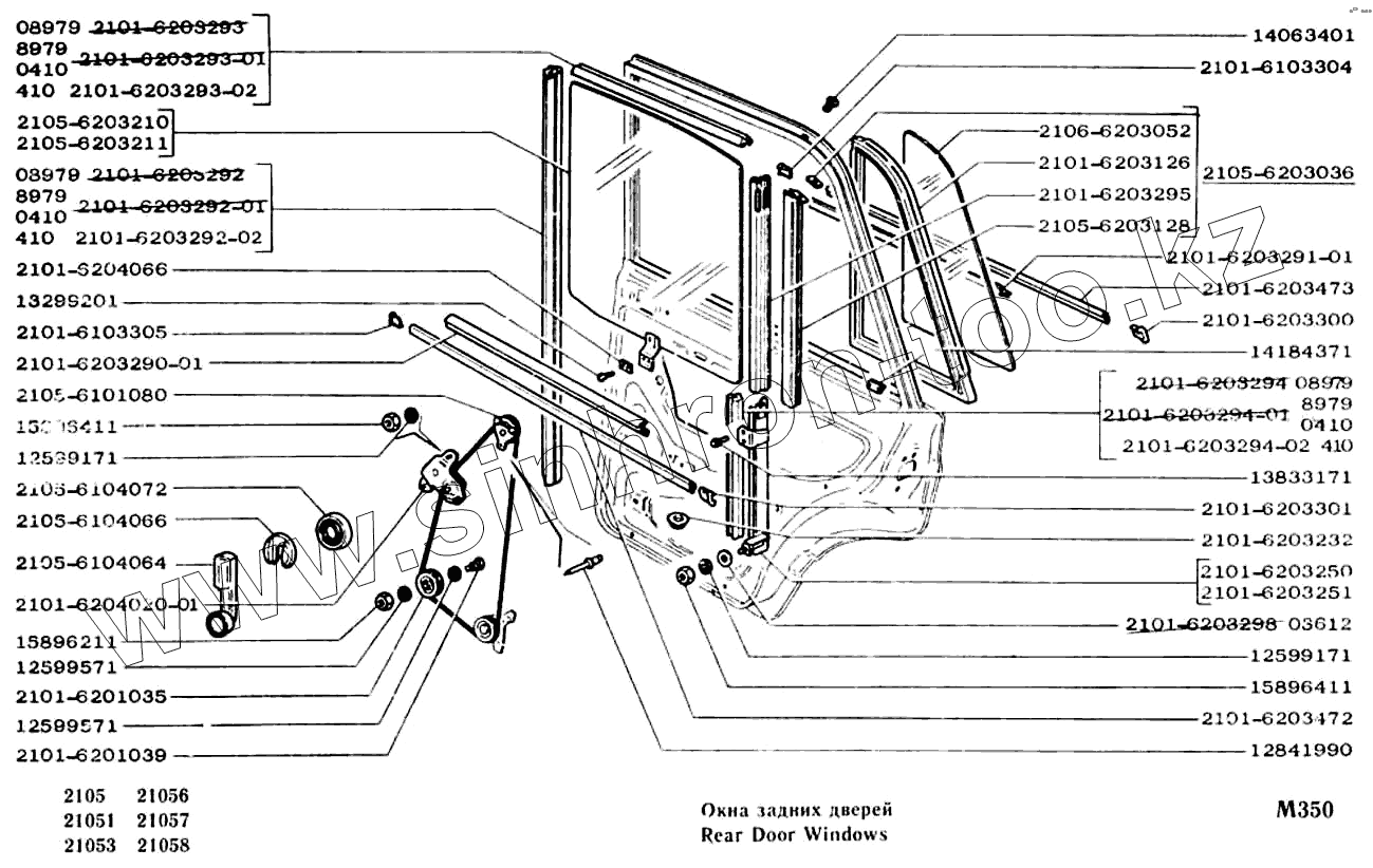 Каталог запасных частей к технике: ВАЗ-2104, 2105. Окна задних дверей