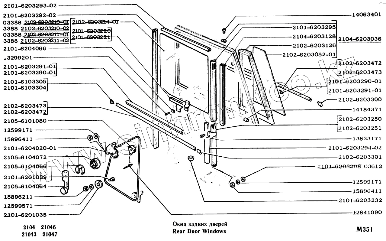 Каталог запасных частей к технике: ВАЗ-2104, 2105. Окна задних дверей