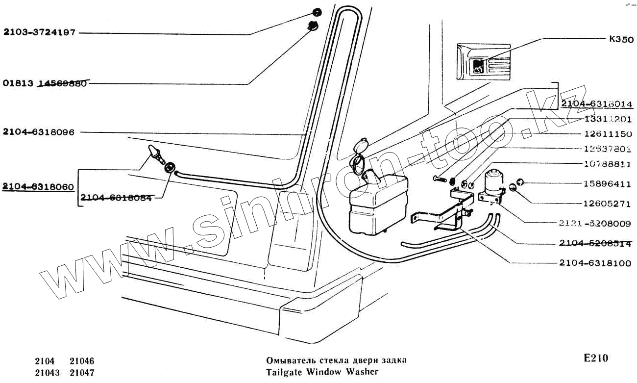 Каталог запасных частей к технике: ВАЗ-2104, 2105. Омыватель стекла двери задка