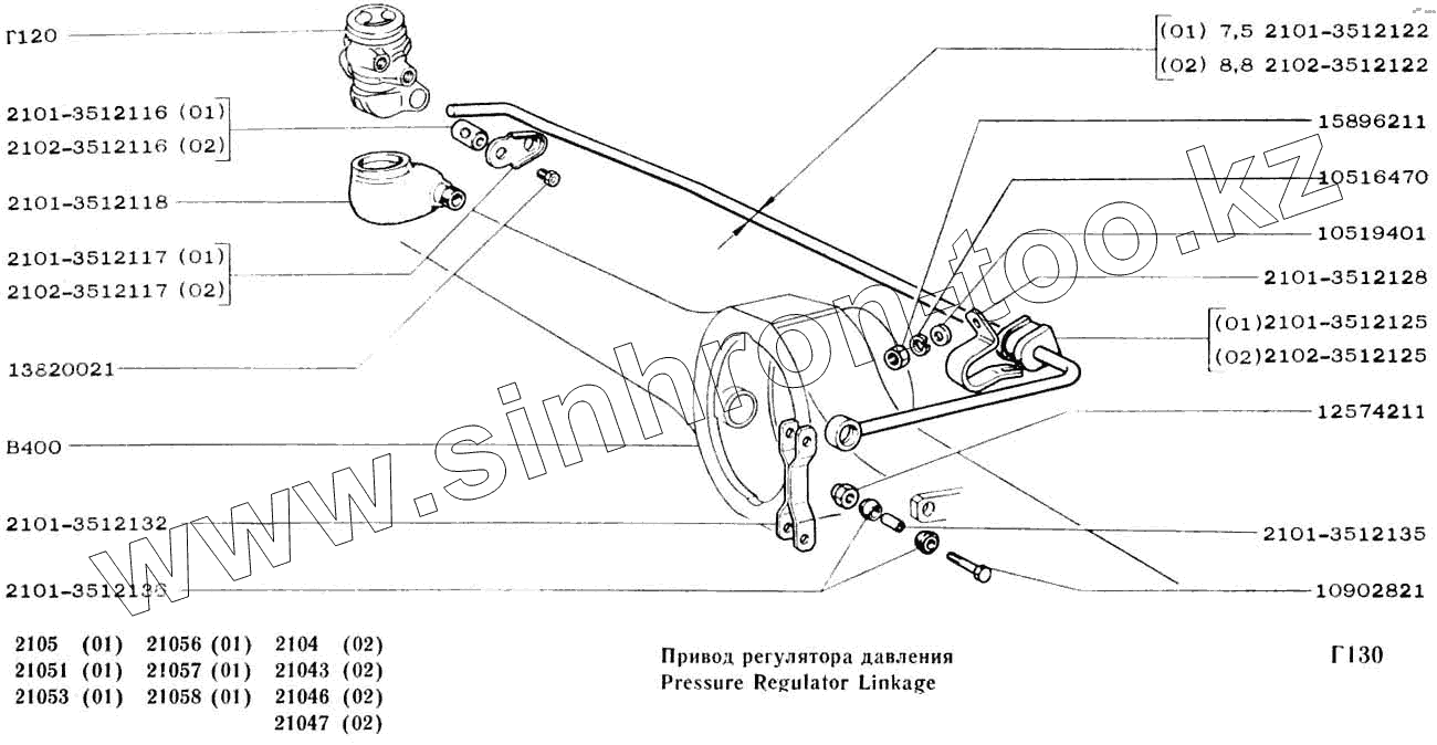 Каталог запасных частей к технике: ВАЗ-2104, 2105. Привод регулятора давления