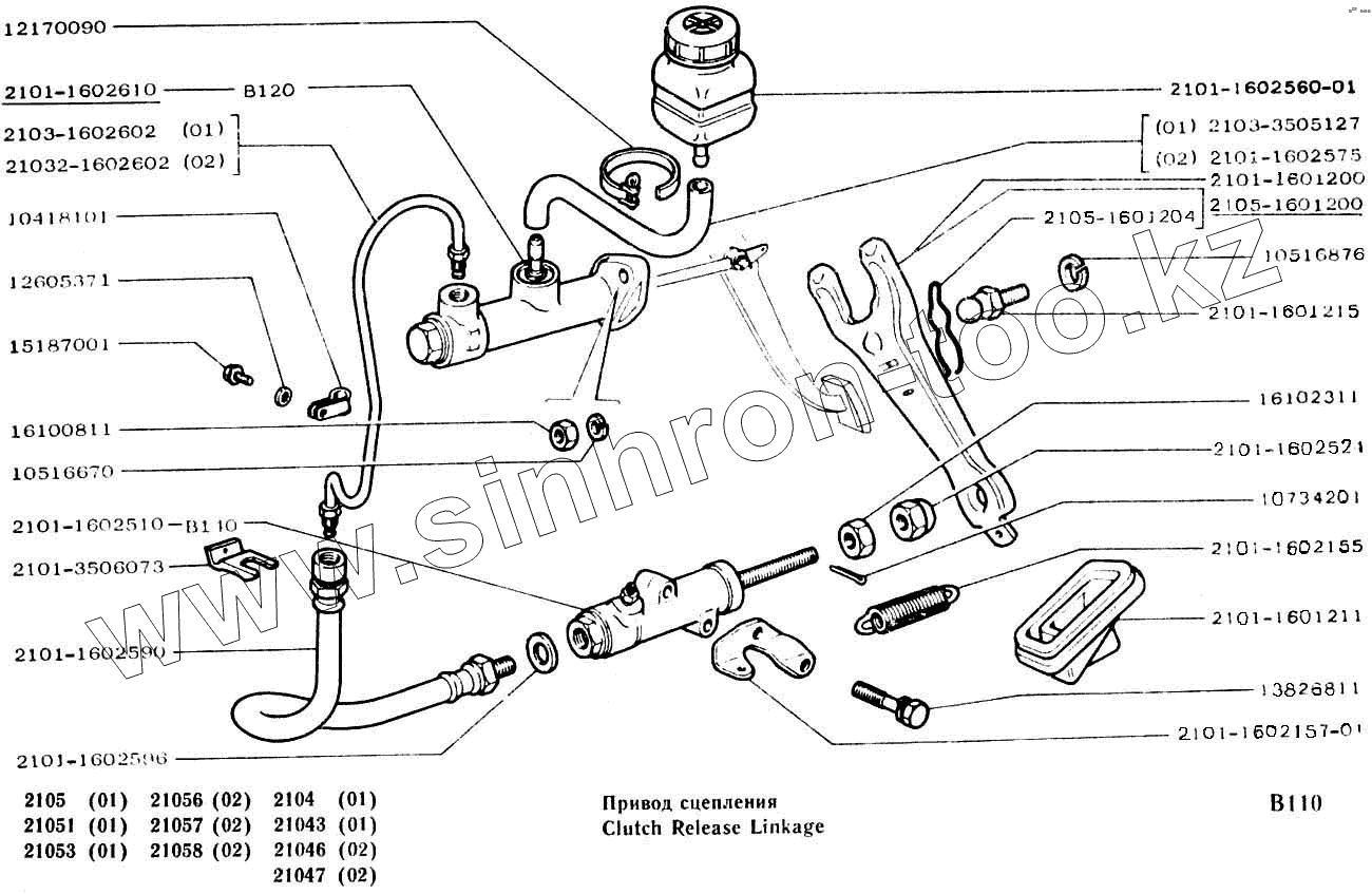 Каталог запасных частей к технике: ВАЗ-2104, 2105. Привод сцепления