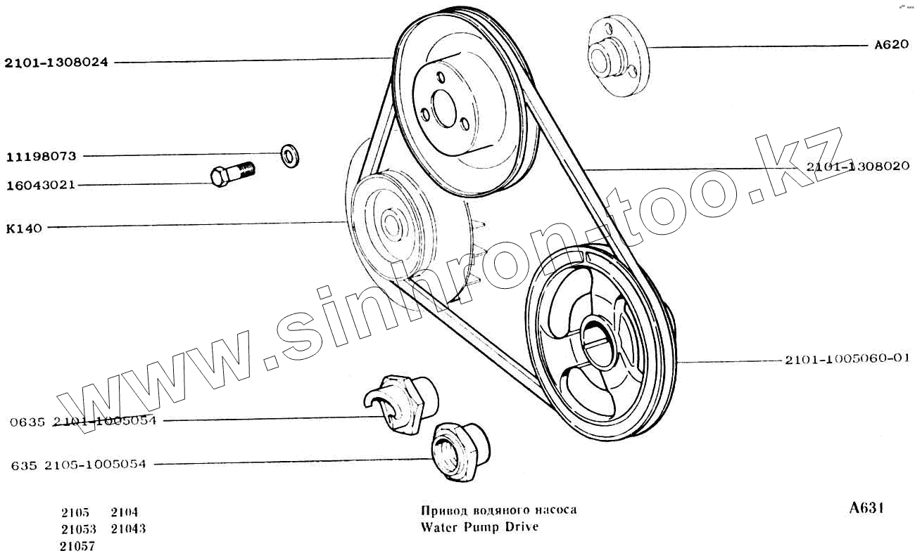 Каталог запасных частей к технике: ВАЗ-2104, 2105. Привод водяного насоса